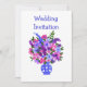 Um Convite de Casamento moderno, chic, da Noiva e do Groom, com um vaso de flores cor-de-rosa, azuis e mauve, da gama de colagens de papel pintadas à mão pelo 'Flor Power', de Judy Adamson. Totalmente e facilmente personalizável.