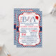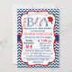 Este é um convite de chá de fraldas bonito que apresenta um design chevron azul e branco com as informações do chá em um quadro traçado em vermelho. Você pode personalizar o convite para incluir o nome, a data e o local do chá. Altere o tamanho, a cor e o estilo da fonte de acordo com as suas preferências.