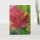 Uma folha de Maple vermelha e folhas de Elm verdes contrastam com uma toalha de mesa colorida no outono, no cobrir deste convite piquenique.