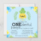 Ele é doce e divertido, sua cara está se tornando uma! Celebre seu primeiro aniversário maravilhoso com este convite temático de abacaxi doce. Apresenta um fundo azul claro com um abacaxi com bigode.