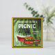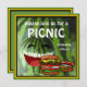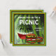 Um design gráfico de hambúrguer ao estilo piquenique, cachorro-quente e melancia risonho pelo artista/designer Charmaine Paulson em um convite piquenique. O convite tem modelos de texto para sua personalização. ©2012
