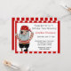 Convite pirata com um pirata da perna. Pirate tem um pano do pé, um pedaço de olho e está vestindo uma camisa vermelha de stripe. Personalize com os detalhes do seu partido.