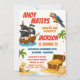 Ahoy! Organize o curso de diversão de aniversário com este Aventurado Convite de Aniversário Pirata, projetado para emocionar rapazes e raparigas. Apresentando uma cena colorida da ilha do tesouro, navio pirata, palmeiras, moedas de ouro e um detalhe lúdico de "X marca o ponto", este convite captura a magia do mundo de um pirata. Totalmente editável on-line — personalize o nome, a idade, o local da festa, o tempo e o RSVP do seu filho em poucos minutos. Quer você esteja planejando uma caça ao tesouro no quintal ou um evento temático no interior, este convite adiciona entusiasmo da primeira impressão.