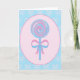 Cartão comemorativo com pirulito rosa e azul. Perfeito para chá de fraldas ou convite.