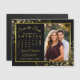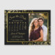 Estes belos cartões magnéticos negros e dourados são a forma perfeita de deixar a sua família e amigos saberem salvar a data do seu próximo casamento. O elegante design apresenta a sua dentro fotográfica de uma estrutura falsa de folha de alumínio de ouro com delicadas curvas e espirais nos cantos. Há uma inscrição no roteiro de ricos e um calendário personalizável mostrando seu mês de casamento com um coração ao redor do seu dia especial. Conveniente e prático, este cartão é certamente agradável.