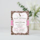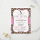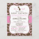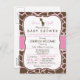 É uma garota! Um chá de fraldas girafa rosa, bonito e elegante convida para um padrão de impressão de girafa rosa e marrom com visual formal de vintage. Excelente para a selva, chás de fraldas temáticos de animais de zoo. Convite de forma de colchete retrô.