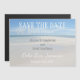 Um ímã de casamento de destino magnético que pode ser totalmente personalizado. Esta imã salve a data apresenta um belo pano de fundo de praia durante a maré baixa.