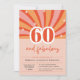 Adicione uma vibração retrógrada à sua festa de sessenta anos com estes sessenta convites de festas de aniversários. Apresentando um design vibrante e fácil de personalizar com todos os detalhes da festa. Pêssego, cor-de-rosa e vermelho, espirais com o texto: "60 e fabuloso! Junte-se às comemorações do (nome) aniversário".