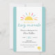 Traga um pouco de sol aos seus convites para o chá de bebê com este convite fofo! Texto: "Esperando por um milagre". Apresentando um desenho animado sol e estrelas e um vibrante esquema de cores amarelo e azul com tipografia elegante do roteiro. Este design moderno é fácil de personalizar com os detalhes do partido.