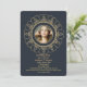 Este convite de aniversário é original e à moda. O roteiro simples contra o fundo do ébano cria um ajuste dramático para a foto do homenageado.