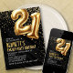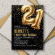 Convite preto aniversário de 21 anos Dourado