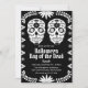Este design único do Dia dos Mortos captura aspectos-chave desta celebração mexicana e seria um ótimo tema para uma festa de Halloween. Uma caveira de açúcar é uma tradição que se destaca nas celebrações do Dia dos Mortos, que começa no final de outubro e vai até o início de novembro, então este cartão de convite é perfeito para qualquer festa que você tenha durante esse período.