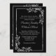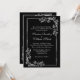 Um simples quadro prateado com sotaques de canto rodeia sua mensagem. Coloque os primeiros nomes da Noiva e do Groom e data de um lado dando aos seus convites uma sensação menos formal. Por outro lado, a informação pertinente sobre o casamento acrescenta uma chama clássica.