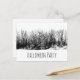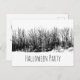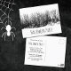 Cartaz de convite do Partido das Bruxas, com design de tipografia assustadora e uma imagem de floresta assombrada a preto e branco. Com texto preto e branco, você pode adicionar suas próprias informações. Um tema gótico assustador para planejar sua próxima fantasia ou celebração do Dia das Bruxas.