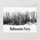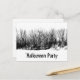 Cartaz de convite do Partido das Bruxas, com design de tipografia assustadora e uma imagem de floresta assombrada a preto e branco. Com texto preto e branco, você pode adicionar suas próprias informações. Um tema gótico assustador para planejar sua próxima fantasia ou celebração do Dia das Bruxas.