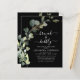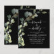 Convites de Chuveiro de Noiva para Brunch e Espumante com Eucalipto Preto, Folhagem Verde, Suculentas Botânicas em Aquarela Verde Esmeralda para a Primavera, em fundo branco - inclui tipografia de letra cursiva bonita e elegante com folhas botânicas modernas e folhagem para a celebração da Noiva Especial