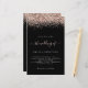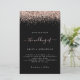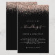 Convite Negro De Casamento Glitter Dourado rosa. Um alternativo maior de 5,5" x 8,5" a um preço orçamentário. Disponível em um STOCK DE CARTÃO SEMI-GLOSS 110 lb ou em um STOCK DE CARTÃO INCORPORADO LINEN (ambos recomendados para convites), há também algumas opções de PAPEL MAIS FINO (que são ideais para gabinetes). NOTE QUE OS ENVELOPES FORNECIDOS SÃO UM POUCO MAIORES DO QUE O CONVITE DE 6,75" x 9". Uma borda de brilho dourado rosa está em cada lado, e O Casamento de em um guião de escrita manual em rosa poeirento com fundo preto. Personalize facilmente o texto para seus próprios detalhes. Você também pode alterar as cores do texto e do plano de fundo por meio da opção personalizar mais, se desejar.