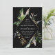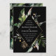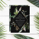 Este convite para o casamento inclui folhas de palmeiras de aquarela, folhas de bananeira, folhagem tropical verde e folhas de ouro falso com formato de diamante de ouro falso. É perfeito para um casamento tropical, praia, verão ou destino.