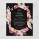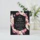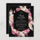 Este Budget Floral Boho Chic Baby Shower Invtions - apresenta texto branco manuscrito e elegante com rosas brancos de burgundy e creme branco sobre fundo preto. O reverso do convite é preto lacônico.