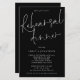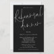 Um tamanho maior de 5,5" x 8,5" a um preço orçamentário, mostrado em preto e branco clássico. Este design moderno tem elegante roteiro informal para Janto de ensaio e o resto da tipografia que você pode personalizar facilmente em um fundo negro. Você também pode alterar as cores do texto e do plano de fundo em ambos os lados, se desejar através da opção Personalizar mais.