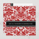 Convites elegantes da renovação do voto de casamento no vermelho chique e elegante, teste padrão floral do damasco clássico preto e branco do vintage com texto inteiramente customizável incluir seus detalhes da cerimónia da renovação do voto. Contacte-nos para uma cor feita sob encomenda.