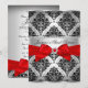 Convite de Aniversário Silver Red Sweet 16. Damask bonito & laço de joia. Por favor, note: Todas as imagens planas, elas não têm joias reais!