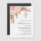 Rosa, ouro e flores, cor-de-rosa, rosas, erva-pampas e uma cruz de ouro. Personalize e adicione um nome e detalhes.