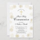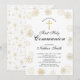 Celebre seu dia especial com este lindo convite de primeira comunhão. Este design apresenta uma moldura dourada elegante e uma cruz. Você pode personalizar todo o texto e a cor do fundo.