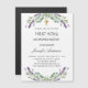 Um fundo branco decorado com flores lavandas e verde de eucalipto. Personalize e um nome e detalhes. Fundo: lavanda, fundo colorido violeta.