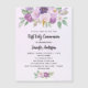 Um fundo violeta, lavanda, de cor aquosa. Decorados com flores violetas e púrpuras, de cor aquosa e verde e uma cruz de ouro. Personalize e adicione seu nome e detalhes de recepção.