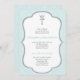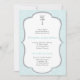 Batismo ou convite da Santa Comunhão com design com cruz e borda azul de bebê.