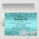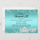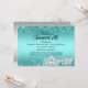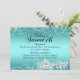 Convite de Aniversário Sweet 16 Azul Turquesa. Tema de princesa elegante com cavalo e carruagem diamantados. Por favor, note: Todas as imagens planas, elas não têm joias reais!