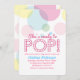 Perfeito para um chá de fraldas temático "Ela está prestes a POP", este cartão é modesto, caprichoso e divertido!