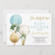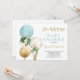 Pronto para o pop, convidem Um belo convite moderno, perfeito para um tema de chá de fraldas de balão com cores azuis e douradas