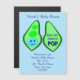 Este incrível convite de festas magnético apresenta uma imagem gráfica de uma vagem verde de ervilha, contendo 2 ervilhas verdes e uma grande ervilha azul. A grande ervilha azul tem um rosto bonito com olhos e boca. Do outro lado da ervilha, em texto rosa mais escuro, diz "Baby Boy Ready to Pop". A design é ideal para um anúncio ou chá de fraldas de gravidez.