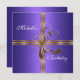 Convite Aniversário Roxo e Dourado abstrato Floral & Trim, White escrevendo Abstrato Party Skinny Long. Aniversário de aniversário