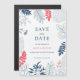Moldura de casamento com flores e folhas tropicais. Acento azul-marinho, branco e vermelho-coral, design de convite de casamento elegante para salvar a data.