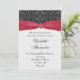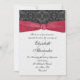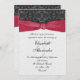 Este convite contém um painel de damascos embrulhado em uma fita vermelha. A parte inferior do convite tem um painel úmido com uma cor contrastante clara. Se preferir, este painel pode ser excluído no painel Personalizar para deixar esta parte branca. Adequado para muitas ocasiões, como um casamento ilustrado ou personalizado para se adequar a um noivado, aniversário, aniversário, chá ou qualquer outra ocasião especial elegante e sofisticada.