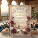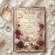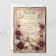 Transporte seus convidados para uma era de romance atemporal com este design opulento do Velho Mundo, apresentando um querubim violinista e flores burgundy exuberantes.