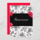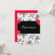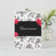 Fundo negro e branco damasco com belas rosas vermelhas. Banner preto para adicionar o texto desejado. Personalize o texto de acordo com as suas necessidades. Mude para Doce Dezesseis, Bat Mitzvah ou Quinceanera.