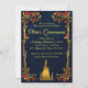 O perfeito conto de fadas quinceañera convite para o grande dia da sua filha. Dourado e marinho com rosas vermelhas e ajustado de castelo para uma princesa.