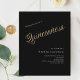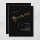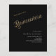 Um convite moderno minimalista da Quinceañera. O fundo preto clássico e a palavra Quinceanera escrita com letras grandes em ouro falso. Personalize e adicione um nome e detalhes da parte. 1 folha = 1 convite impresso de borda a borda.