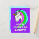 Esta design de festa divertida apresenta uma cor de fundo brilhante e um feliz unicórnio arco-íris. Personalize com seu próprio nome, idade e informações! Projetado no belo estado de Washington, EUA, por um artista independente.