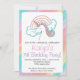 Um belo unicórnio desenhado e pintado em cores marechosas em cima de um bonito arco-íris. Divertido para uma festa de arte, sono ou qualquer celebração mágica!