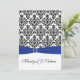 Este convite de casamento tema damasco preto e branco com azul real IMPRESSO EM fita e joias seria perfeito para um tema de casamento real azul e preto. O texto e o papel são todos personalizáveis. Se você precisar de outros itens correspondentes, envie um e-mail para niteowlstudio@gmail.com.