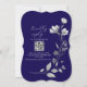 Faça uma declaração ousada e elegante com este convite de casamento floral azul real. Apresentando delicadas flores de aquarela prateada e caligrafia graciosa, este cartão em forma exclusiva é perfeito para um inverno ou uma celebração formal. Seu encanto romântico, botânico, dá o tom para um evento sofisticado cheio de amor e estilo.