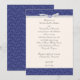 Convite de casamento padrão 5 x 7 em padrão simples de espiral florentina em azul real. O padrão impresso tem sotaques gráficos de fita predefinidos em um fundo branco suave, todos formatados e prontos para serem editados com seus próprios detalhes de evento no editor de texto fácil do Zazzle. Disponível em 6 cores. Cartões RSVP, cartões salve a data, placas de tenda de mesa e envelopes internos de padrão de impressão correspondentes também estão disponíveis separadamente nesta coleção. *Permitir semanas extras para envelopes personalizados correspondentes.