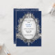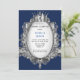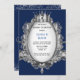 Você vai adorar esse fundo de textura azul marinho com uma armação De flur prateado com falso brilho prateado e coroa real. Vinculando convites para corresponder.