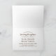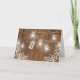 Convite de recepção country rústico com fundo de madeira de celeiro rústico, luzes de corda cintilantes em pote de mason, decoração floral de respiro de bebê no canto, etiqueta amarrada com um nó com suas iniciais e modelo de recepção de casamento noturno.