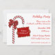 Um convite festivo para festas de festas com cana-de-açúcar vermelha e branca e fita vermelha e arco. Fácil de personalizar com os detalhes da sua festa. Convites vêm com envelopes e sua escolha de papel.